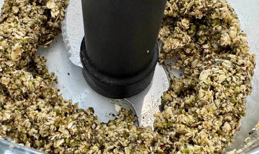 - Add oats, chia, sesame seeds, salt and the butter-honey mixture.