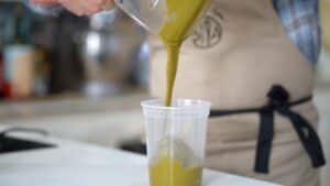 - If using a high-powered blender, follow the same method. To protect the delicate oils, it’s crucial to prevent the mixture from overheating—never let it exceed 113°F/45°C. Stop the blender frequently to avoid excessive heat buildup. If the mixture becomes too warm, refrigerate it for 10–15 minutes to cool, then resume processing.