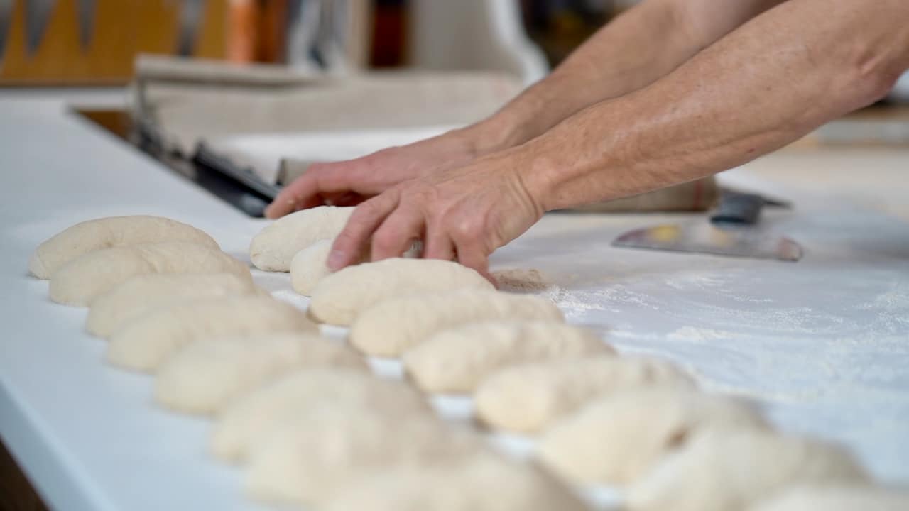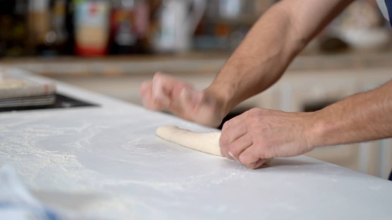 - To create an epic finish, the baguette ends can be tapered into a pen tip. To do so, swiftly press and roll the ends into sharp points with minimum flour.