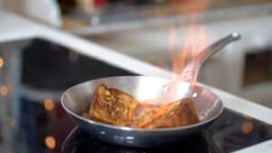- Flambé immediately after searing each batch of panettone in the hot pan. If using this method, you must use clarified butter.