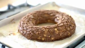 • Preheat fan oven to 350ºF/180ºC. Bake wheel (one at the time) for 50 minutes. Turn oven off, and leave door ajar for 10 min. Remove cake from the oven, and let cool.