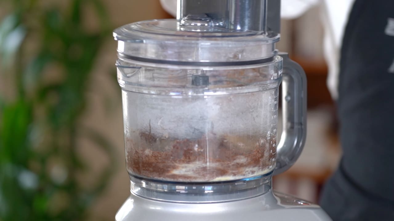 - In a food processor, pulse butter with flour and cocoa powder. Add sugar and blend well. Divide pastry into 2 equal portions.