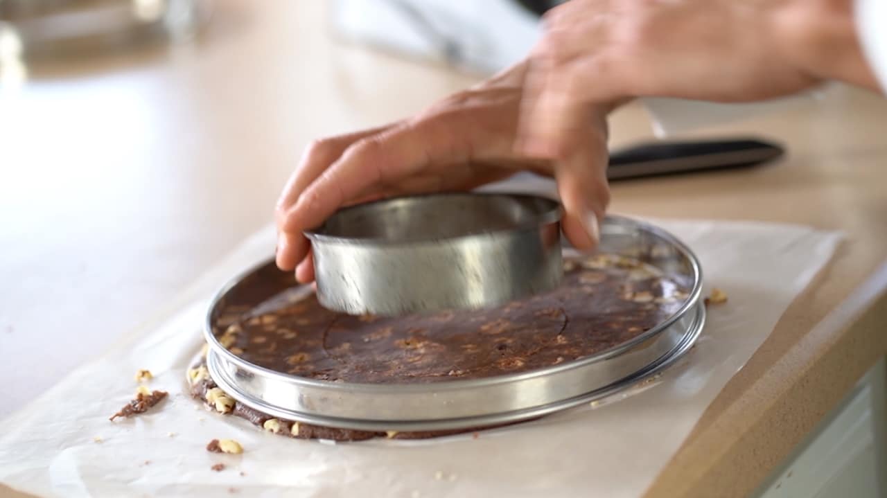 - Trim off each wheel into 9-inch/23cm disk, and make a 4.3-inch/11cm hole in the center. Keep crumble wheels frozen until ready to use.