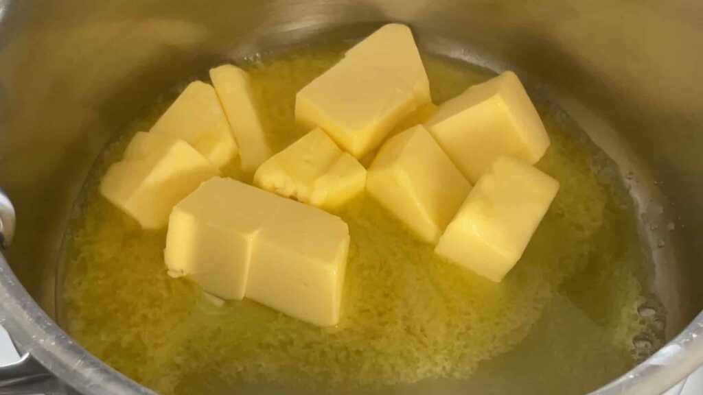 - In a small saucepan, cook butter on low heat.