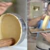 - Microwave the butter for a few seconds to soften, but do not let it melt. In the bowl of a stand mixer fitted with a paddle attachment, beat the softened butter with the salt and corn starch until smooth. Scrape the sides of the bowl and paddle every so often to ease the ingredients incorporation. Using an immersion blender, mix together the eggs, water, and vinegar. Add the liquid to the butter-starch batter in two additions, mixing until incorporated after each.