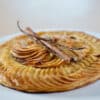 - Spread 250g green apple sauce onto the pastry and reserve in the refrigerator. Peel, core and cut apples into thin slices using a mandoline. Overlap apples slices very close to the edge. Fill the middle of the pie with apple scraps. Brush the first apple row with the cinnamon flavored butter. Make another row and season with the remaining butter sauce.