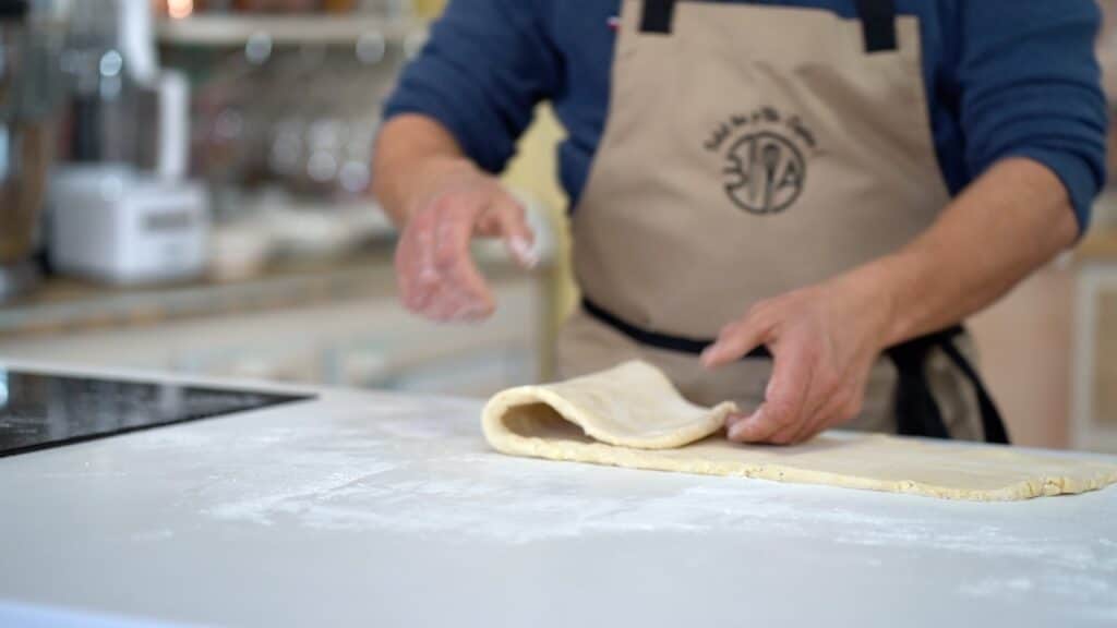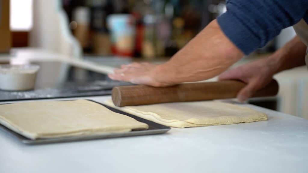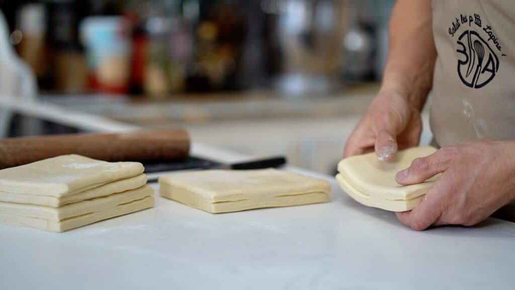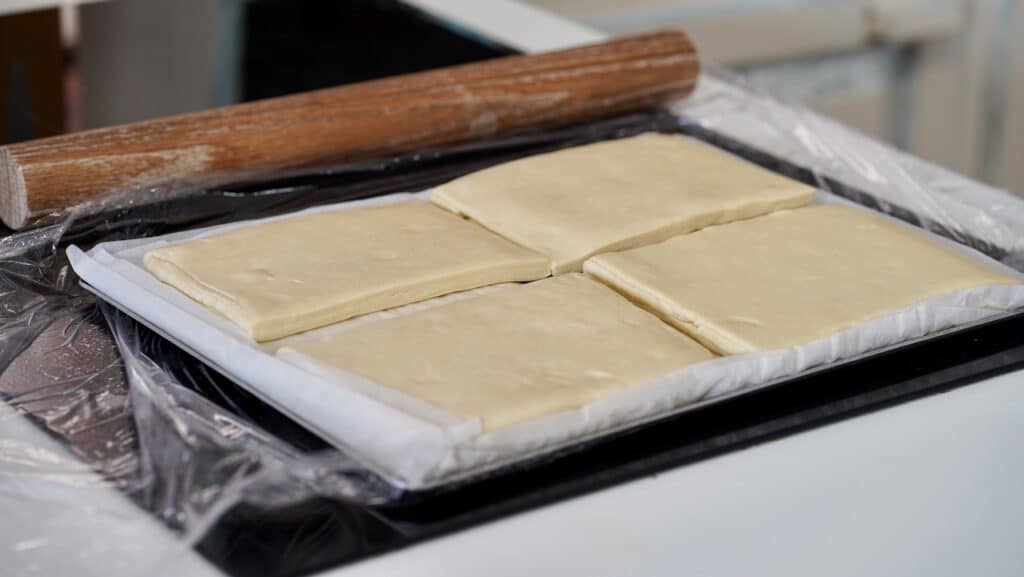 - Repeat 3 more times (1+3). Wrap it and let it rest in the fridge for about 30 minutes. Resting the dough in the fridge relaxes the gluten and keeps the butter cold and firm. After the initial resting period, you perform the fifth and last single turn. Wrap and chill the laminated pastry for 30 minutes more.