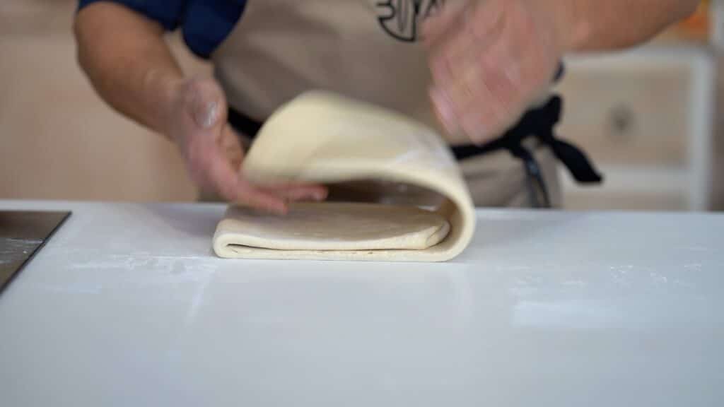 - Fold one-third (right) of the dough over the center.