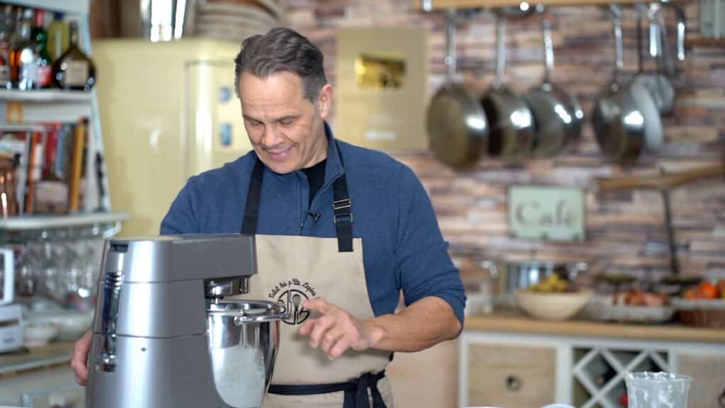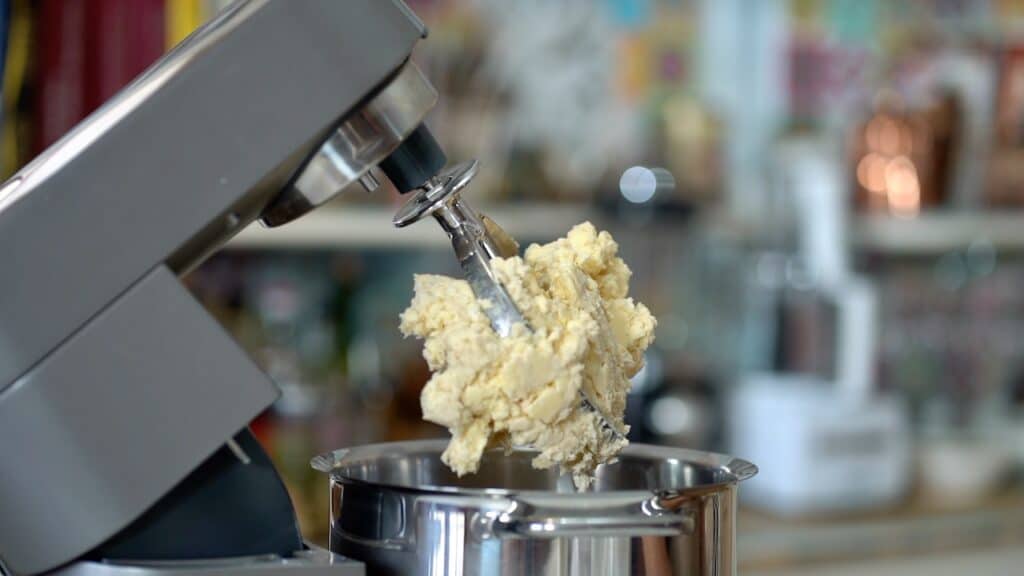 - In the stand mixer fitted with the paddle attachment, mix dry ingredients for a few seconds. Add cold butter and mix for 30 seconds to create a coarse mixture. The brief mix ensures that while the butter is distributed, most chunks remain intact. These butter pieces are essential for creating layers during the folding steps.