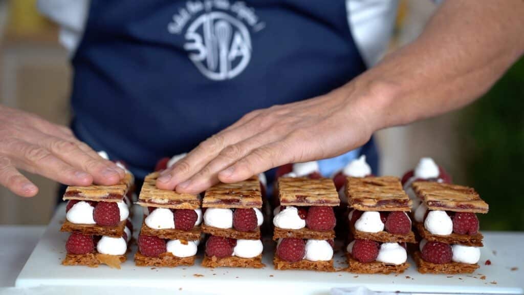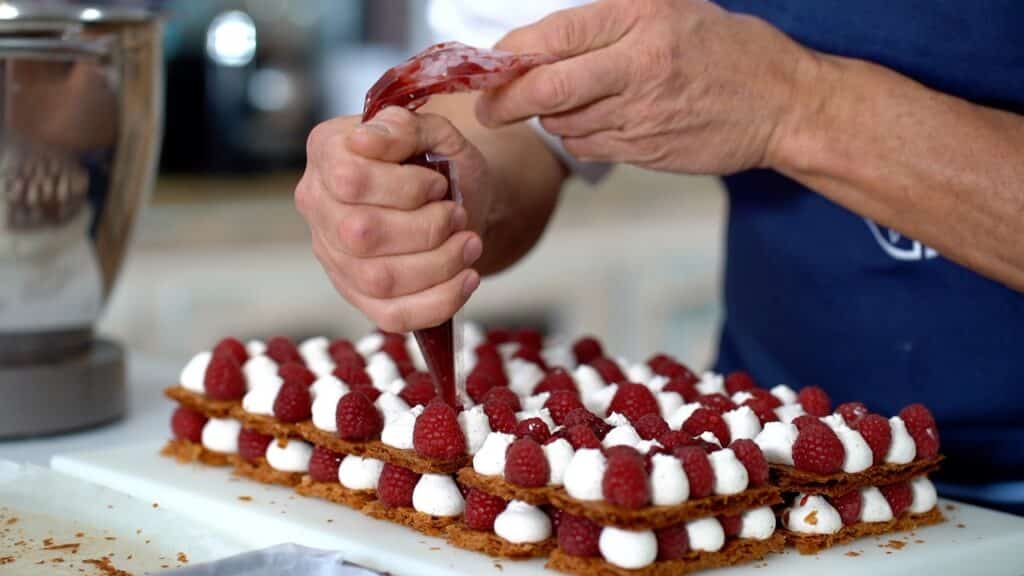 - Enclose mille-feuille with the raspberry jam lattice pastries.