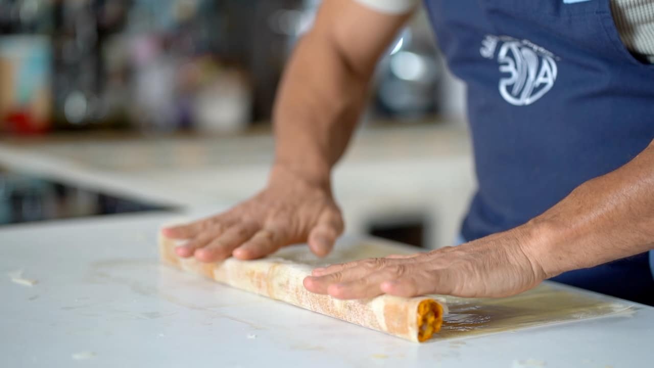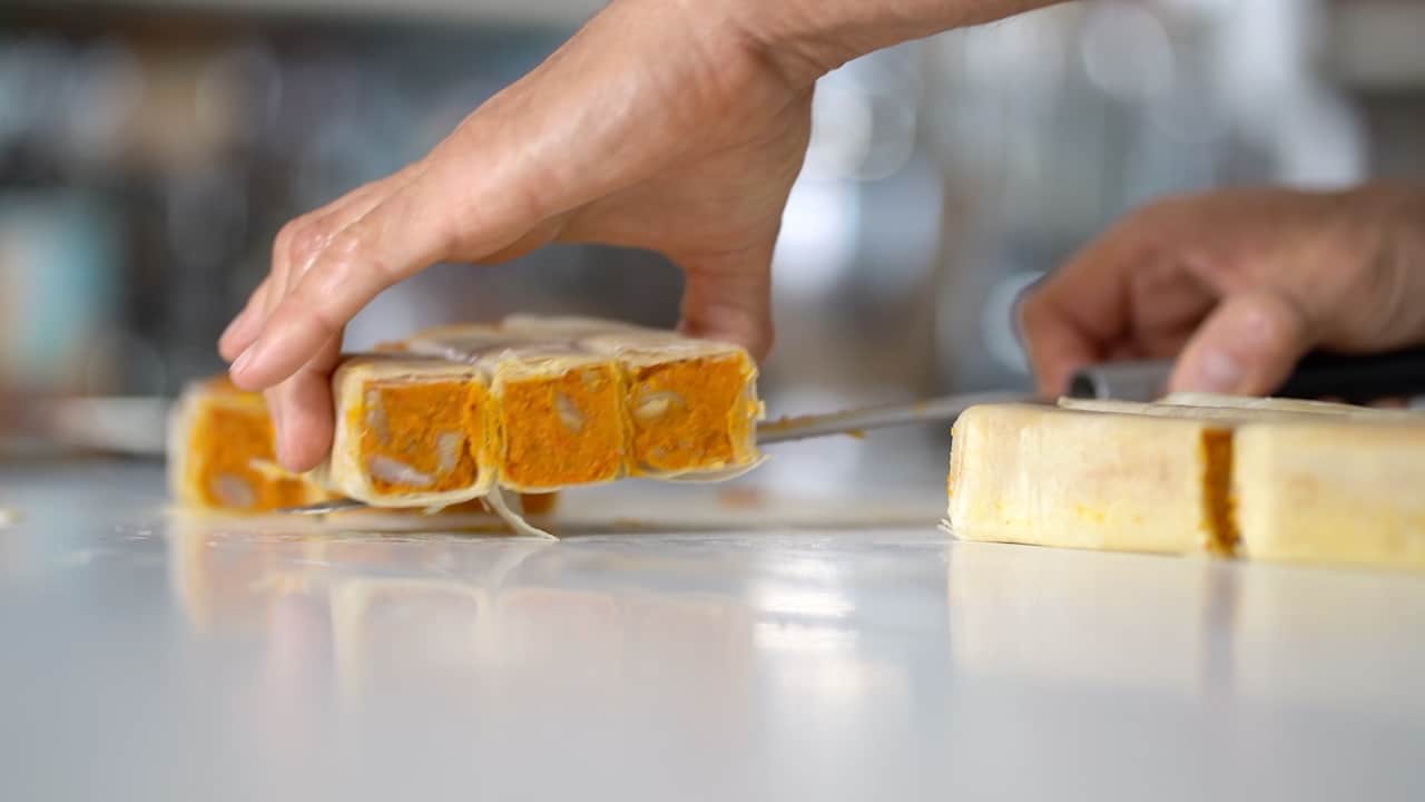 - Pipe a thick rope of potimarron filling (about 500g) per log.