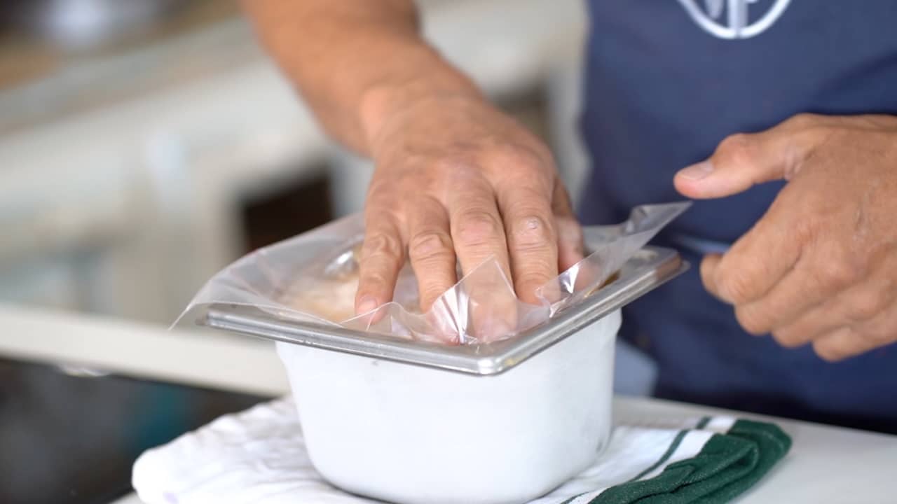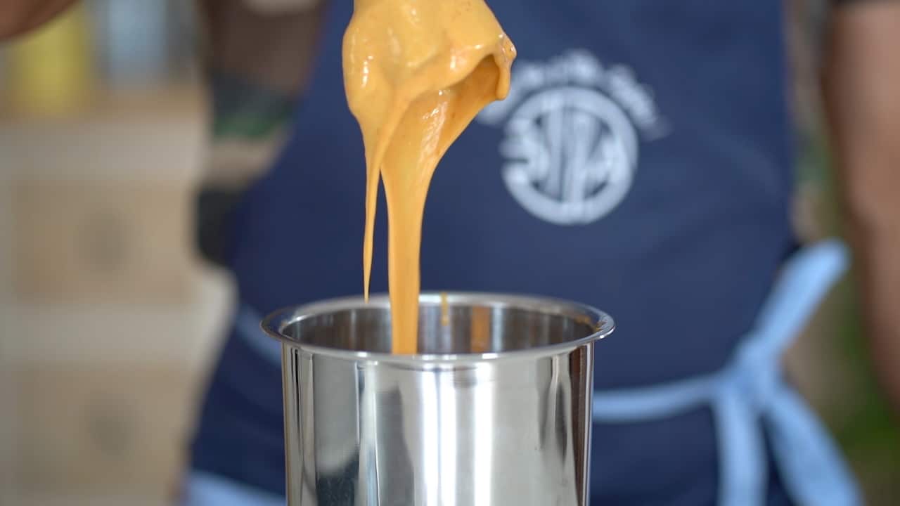 - At 95ºF/35ºC, add the egg yolks and inverted sugar. At 113ºF/45ºC, add the stabilizer-sugar mixture. Mix.