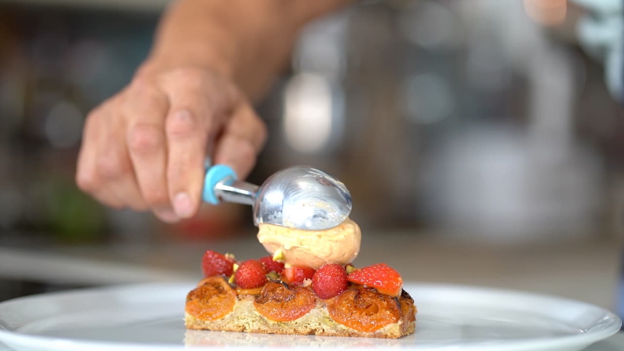 When it comes to ice cream, the possibilities are endless. This Roasted Apricot Ice Cream with a Hint of Rosemary is the perfect example of how creative your imagination can go. Velvety and rich, the caramelized sweetness of roasted apricots melds seamlessly with the subtle, pine-like aroma of fresh rosemary. Each spoonful is a balance of bright fruitiness and earthy sophistication, making it an elegant choice for high-end desserts. Drizzle it with honey, pair it with almond tuiles, or layer it into an exceptional sundae with crushed amaretti cookies and a whisper of whipped mascarpone. However you serve it, this ice cream transforms the ordinary into the extraordinary—one luxurious bite at a time.