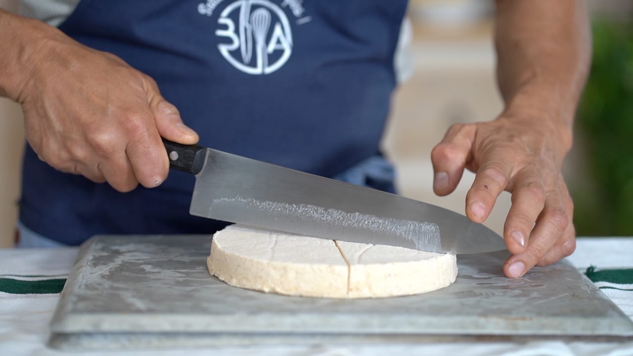 - Cut ice cream disk onto a frozen tray into 6 or 8 slices. Keep frozen.