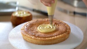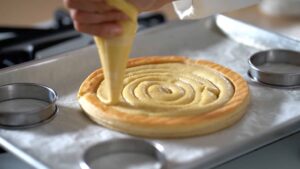 - Pipe some custard onto the pastry.