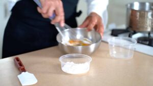 - Meanwhile, mix egg yolks with sugar and starches.