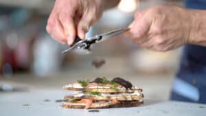 Keyword: club sandwich, dark rye bread, smoked salmon, snacks