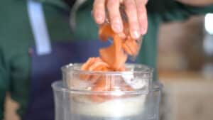 - Pulse the mustard, mascarpone, lemon juice, and zest in a food processor. Add the salmon and pulse until smooth. Season with ground black pepper, to taste. No need to add salt. Refrigerate the mousse until needed.