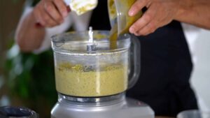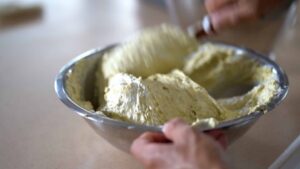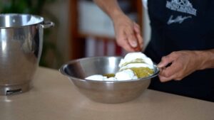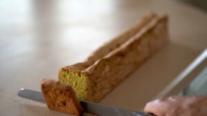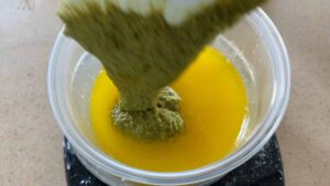 - Mix melted butter with pistachio paste.