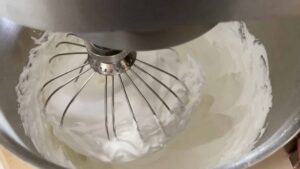 - In the stand mixer fitted with the whisk attachment, beat egg whites with cream of tartar and one-third of the sugar on medium speed for a few minutes. Increase mixer speed to high and continue beating until firm peaks form adding remaining sugar gradually. Turn oven on.
