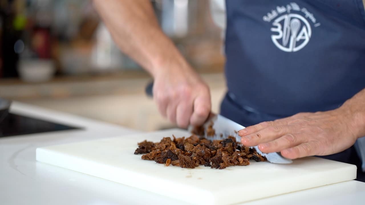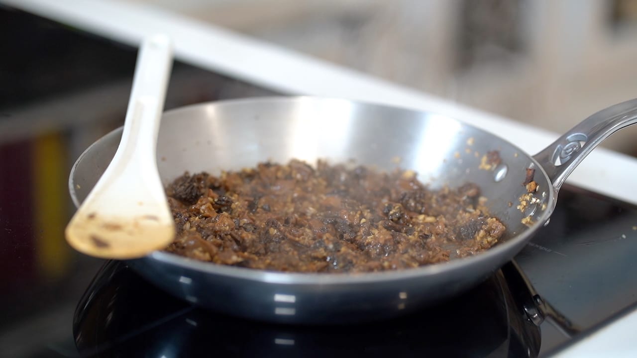 - Chop the drained, rehydrated mushrooms.
