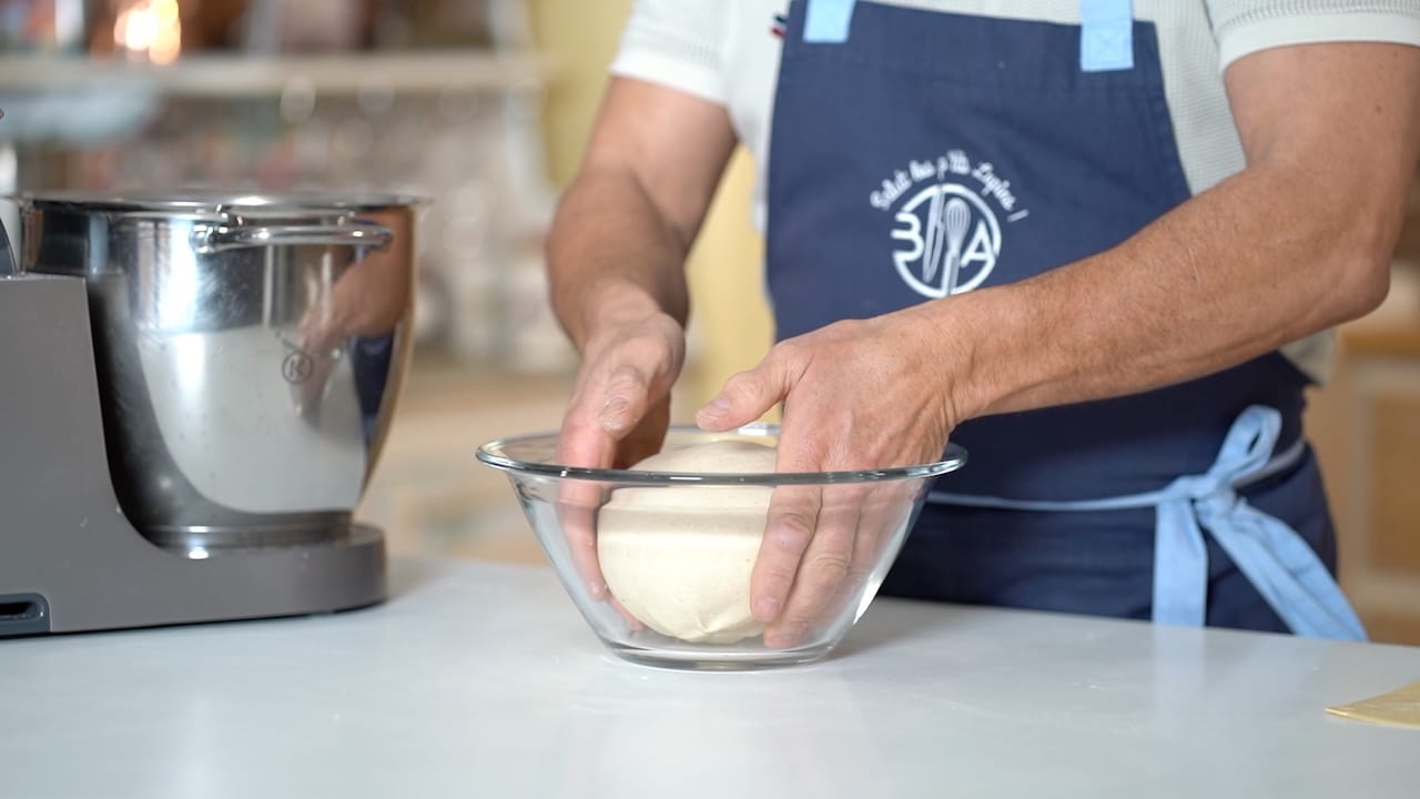 - Form the dough into a tight ball (no extra flour needed) and place it in a large bowl. Cover with a damp kitchen towel and let it rest at room temperature for 2 hours.