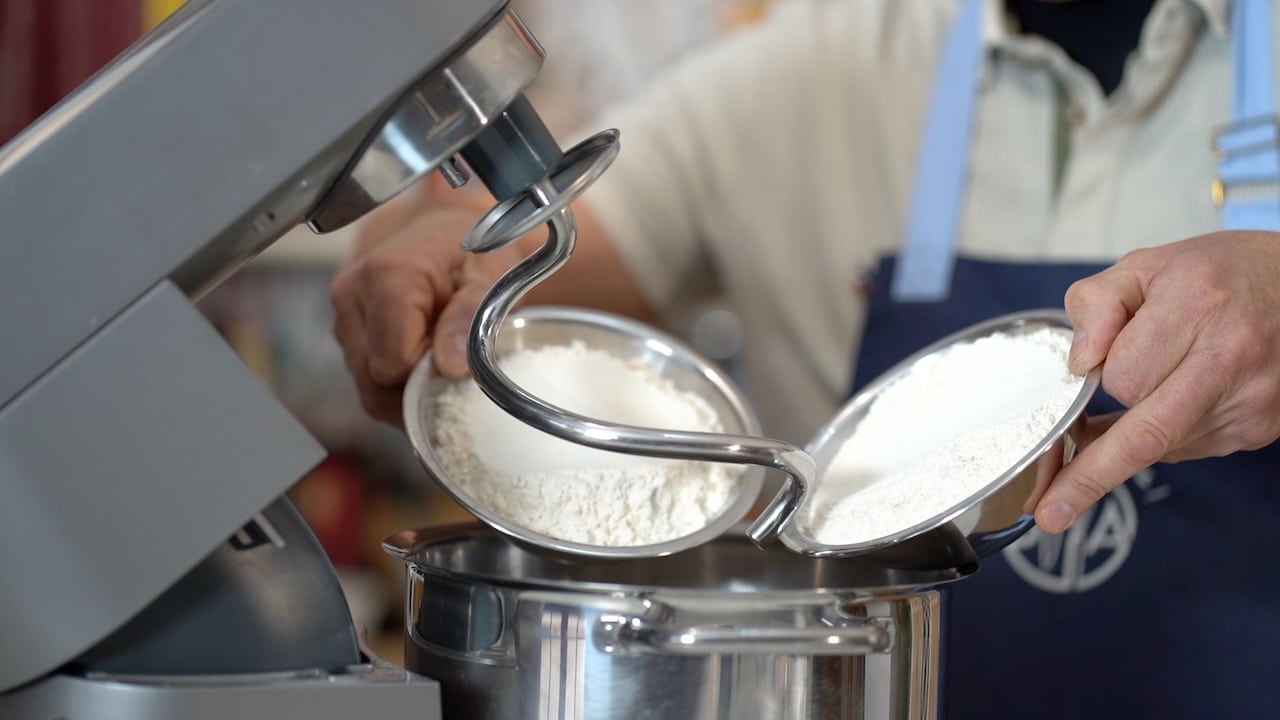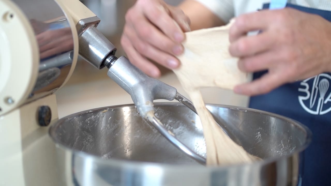 - Always calculate the amount of starter needed for your daily baking accurately, ensuring you have enough to carry forward for future batches.The day before mixing bread, combine water, natural starter, and flours in a stand mixer fitted with the hook attachment. Mix on low speed for 3 minutes until the ingredients come together. Then increase the speed to medium-high and continue mixing for 7 minutes, or until the dough pulls away from the sides of the bowl.