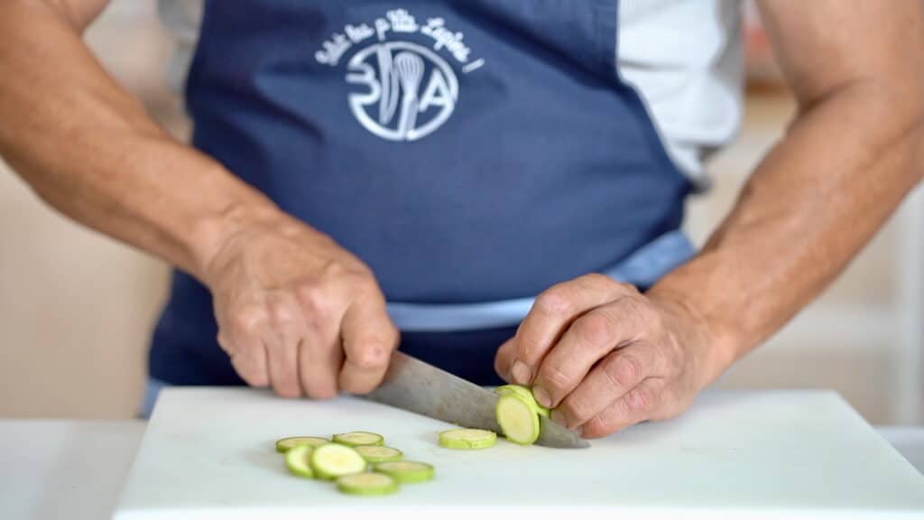 - To be prepared a day before. If you chose to follow the traditional recipe, you will have to get small zucchini (≈1 per serving). Slice them into thin rounds (about 3mm thick). Use a sharp knife. Spread zucchini rounds onto a baking tray, and leave them at room temperature overnight to dry out.