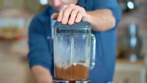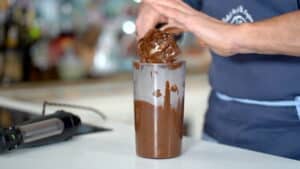 - Transfer the avocado-chocolate mixture to a narrow container and blend with an immersion blender. Note: If making a larger quantity, blend everything from the start using a high-powered blender.