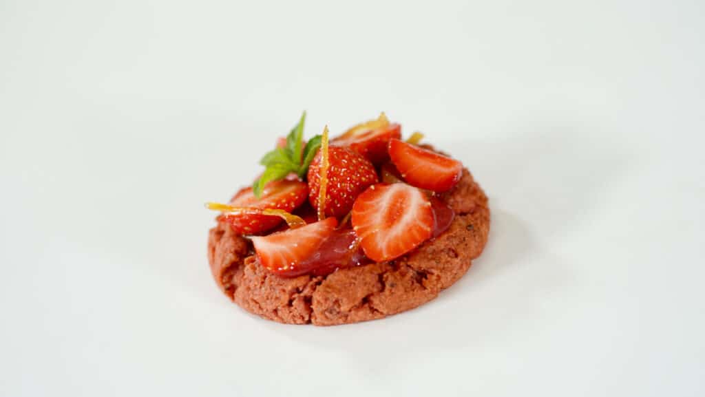 Get ready to indulge in a divine treat with these extraordinary strawberry cookies! Inspired by the renowned pastry chef Cedric Grolet, these red fraise-flavored cookies are a must-try for any cookie lover. The soft and luscious cookie dough is infused with the delicious flavor of strawberries, setting the stage for a truly unforgettable taste experience. Imagine biting into a cookie that is not only perfectly soft and chewy, but also bursting with the refreshing sweetness of fresh strawberries. To take these cookies to the next level, they are generously filled with a decadent strawberry marmalade and luscious strawberry caramel, creating a symphony of flavors that will tantalize your taste buds. Each bite is a delightful blend of buttery cookie dough, fruity strawberry marmalade, caramel notes from the strawberry caramel, and the juicy freshness of sweet strawberries. These cookies are not just a treat for your taste buds, but a feast for your eyes as well, with their vibrant red color and irresistible appeal. If you are looking for a unique and indulgent dessert to impress your guests or simply treat yourself to something special, these extraordinary strawberry cookies are the perfect choice.
