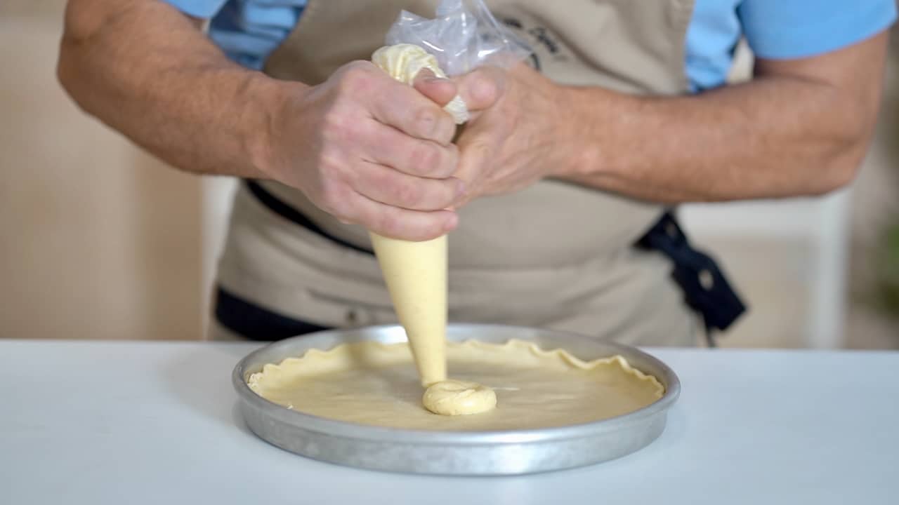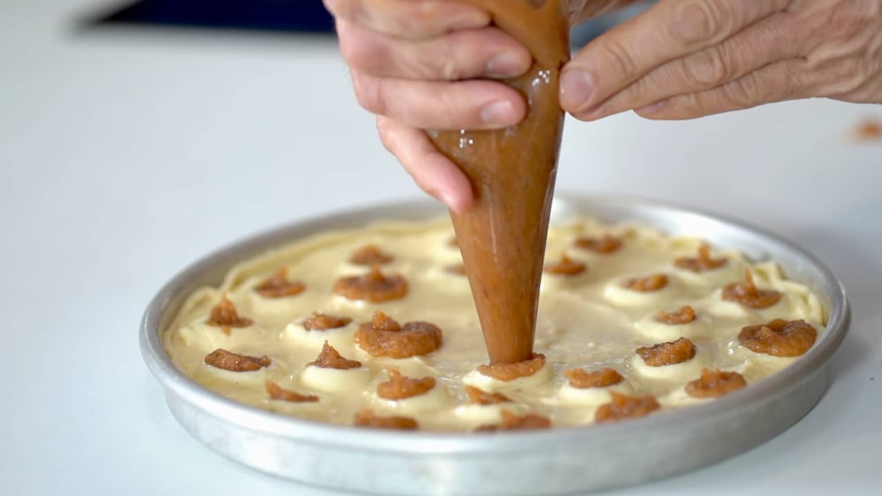 - Pipe or spoon generous, spaced dollops of the chilled caramelized apple compote.