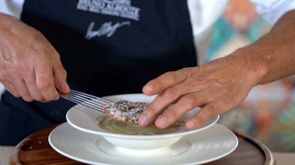 Among the greatest appetizers, are the soups. Served cold or hot, the Vichyssoise belongs to this category. It was invented by Louis Diat, head chef at the Hotel Ritz-Carlton in 1917… working on new menu items, he recalled his mother's soup. Interestingly enough, Julia Child's absolute favorite soup was vichyssoise. Here is an upscaled version inspired by Chef Frédéric Anton, MOF and three stars at the Guide Michelin.