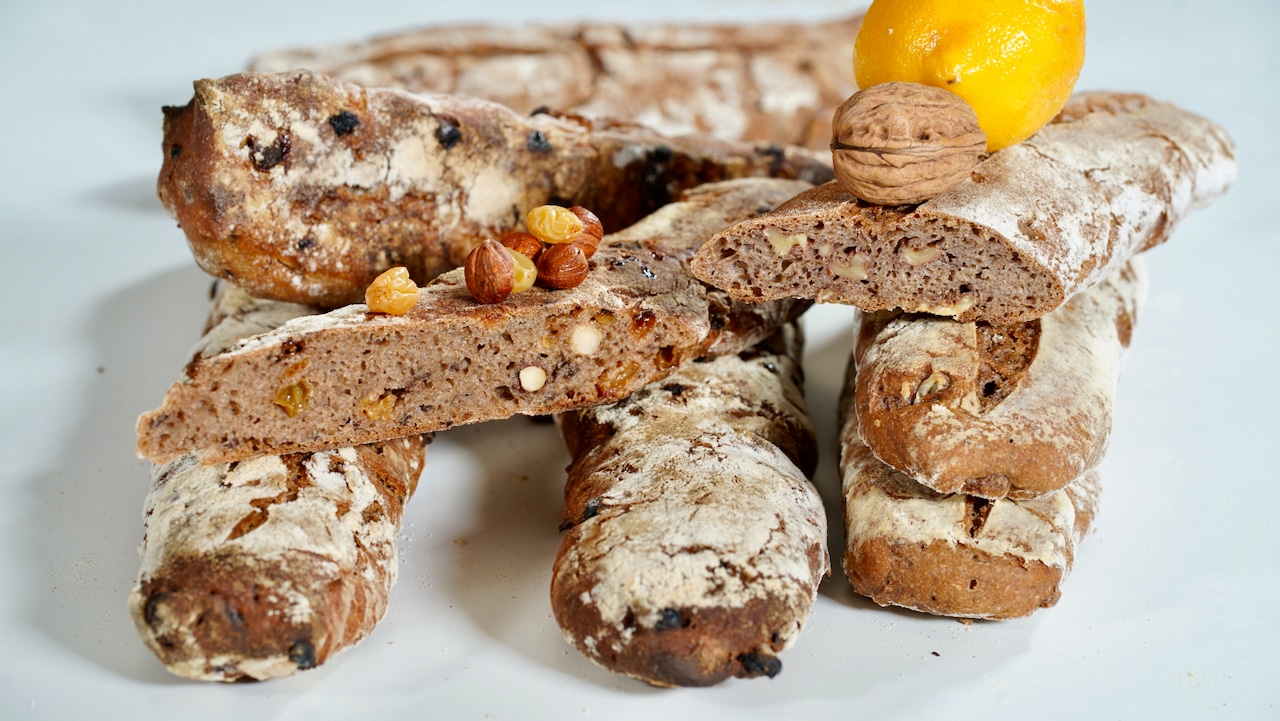 In our ongoing exploration of dark rye, we move beyond the classic round loaf to create something both playful and profoundly satisfying: the Wholemeal Rye Fruit Bread Stick. Imagine a demi-baguette, not of airy white flour, but one with the dense, earthy soul of wholemeal rye and natural leaven. On one tray, you might find a line of sticks nestled with the sunny, aromatic combination of Walnut and Lemon. Alongside them, another tray holds the classic, comforting union of Hazelnut and Raisin. The sweet, chewy bursts of raisin are grounded by the toasted, buttery crunch of hazelnut, creating a flavor profile that is both nostalgic and wonderfully complex. But the possibilities, as any baker knows, are truly endless. Let’s get started!