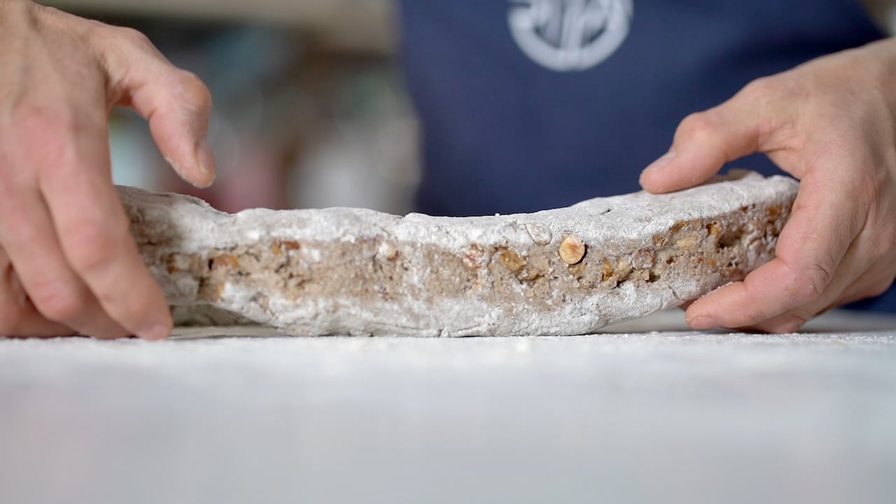In our ongoing exploration of dark rye, we move beyond the classic round loaf to create something both playful and profoundly satisfying: the Wholemeal Rye Fruit Bread Stick. Imagine a demi-baguette, not of airy white flour, but one with the dense, earthy soul of wholemeal rye and natural leaven. On one tray, you might find a line of sticks nestled with the sunny, aromatic combination of Walnut and Lemon. Alongside them, another tray holds the classic, comforting union of Hazelnut and Raisin. The sweet, chewy bursts of raisin are grounded by the toasted, buttery crunch of hazelnut, creating a flavor profile that is both nostalgic and wonderfully complex. But the possibilities, as any baker knows, are truly endless. Let’s get started!