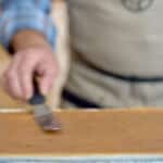 - Arrange the apple slices artfully in 7 rows lengthwise on top of the apple sauce. If you plan to bake the apple pie later, squeeze half a lemon and brush the juice over the apple slices to prevent browning.