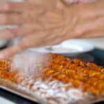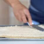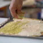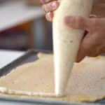 - Roll out pastry into a 4mm thick imperfect sheet. Prick with a fork and freeze.