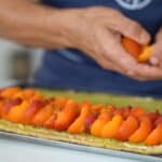 - Preheat fan oven to 330ºF/160ºC. Bake pie for 55 minutes. Remove from the oven and dust the roasted apricots with the vanilla sugar.