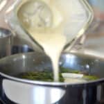 - Add parmesan cheese in the reduced sauce. Remove from the heat, and drop in the egg yolk. Emulsion the sauce using the high powered blender. Season with salt and pepper to taste.