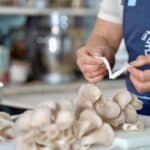 - To clean oyster mushrooms, use a damp cloth or a soft brush to gently wipe away dirt. If necessary, quickly immerse oyster mushrooms in water (heads down) and reverse over a tray lined with paper towels to drain. Cut off the tough base of the cluster where the stems join. Save trimmings for stock. Separate larger mushrooms into individual pieces or leave smaller clusters whole. Tear larger mushrooms in 2 or 3.