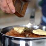 - Top seared meat with herbs, butter and season with ground black pepper.