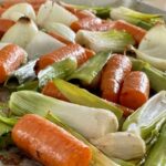 - By the time bones are roasting, trim off leeks tips, split in half and soak in warm water for 10 minutes or so. Meanwhile, quater onions and peel. Quarter turnip. Split garlic bulbs in half. Cut carrots into large chunks and chop celery. Drain leeks and roughly chop. Chop tomatoes.