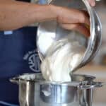 - In the stand mixer fitted with the whisk attachment, whip the cold heavy cream to soft-medium peaks. Transfer the supple whipped cream to a large bowl, and refrigerated. Keep aside the mixing bowl and whisk uncleaned for the Champagne mousse.