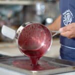- Place your gelatin sheets in cold water. Let them soak for about 10 minutes. Drain the bloomed gelatin and squeeze out excess water; set aside.Prepare the rimmed baking tray: Oil it lightly and line it with a sheet of acetate or a large freezer bag, smoothing it out to avoid wrinkles. Avoid plastic film. In the small saucepan, bring to a boil the fruit puree with the sugar. Cook for a minute. Remove from the heat, and add the bloomed gelatin. Pour the red fruit mixture in the prepared baking tray. Let cool to room temperature and refrigerate overnight. Make sure that your refrigerator is perfectly leveled, otherwise you may end up with one side thicker than the other.