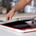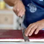 - Carefully, place one half on top of the other (red fruit layer side up).