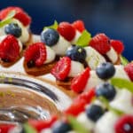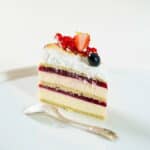 - Torch the meringue. Let thaw the cake overnight in the refrigerator. Decorate cake with red fruits if desired.