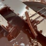 - If the chocolate begins to thicken or cool down, gently warm the surface of the tempered chocolate with a hair dryer set on low blow. This helps maintain a workable temperature without overheating and breaking the temper. If the chocolate mass starts to cool below its tempered range, place the bowl over a bain-marie with warm (not boiling) water. Stir gently and continuously to distribute heat evenly. Monitor the temperature carefully to ensure it stays within the correct tempered range.