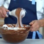 - Incorporate one-third of the whipped cream into the chocolate mixture with the whisk. Then add the remaining whipped cream. Finish folding it using the rubber spatula. The chocolate mousse is now ready to use!