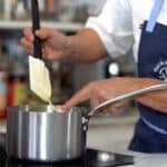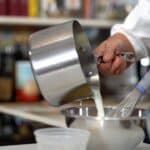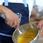 - Temper the egg yolk-sugar mixture with hot milk.