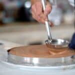 - Spread out mousse downward and toward the edges of the ring with the ladle.