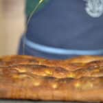 - To avoid fat sliding off excessively, make some holes using your fingertips. Drizzle bread with olive oil and season with the chopped herbs.